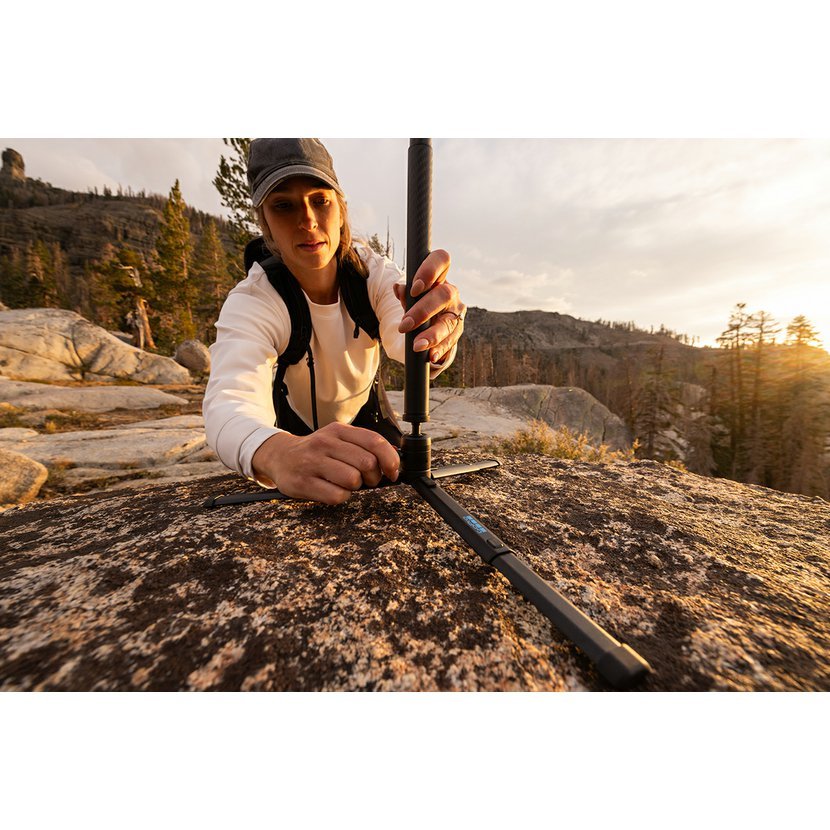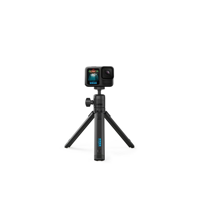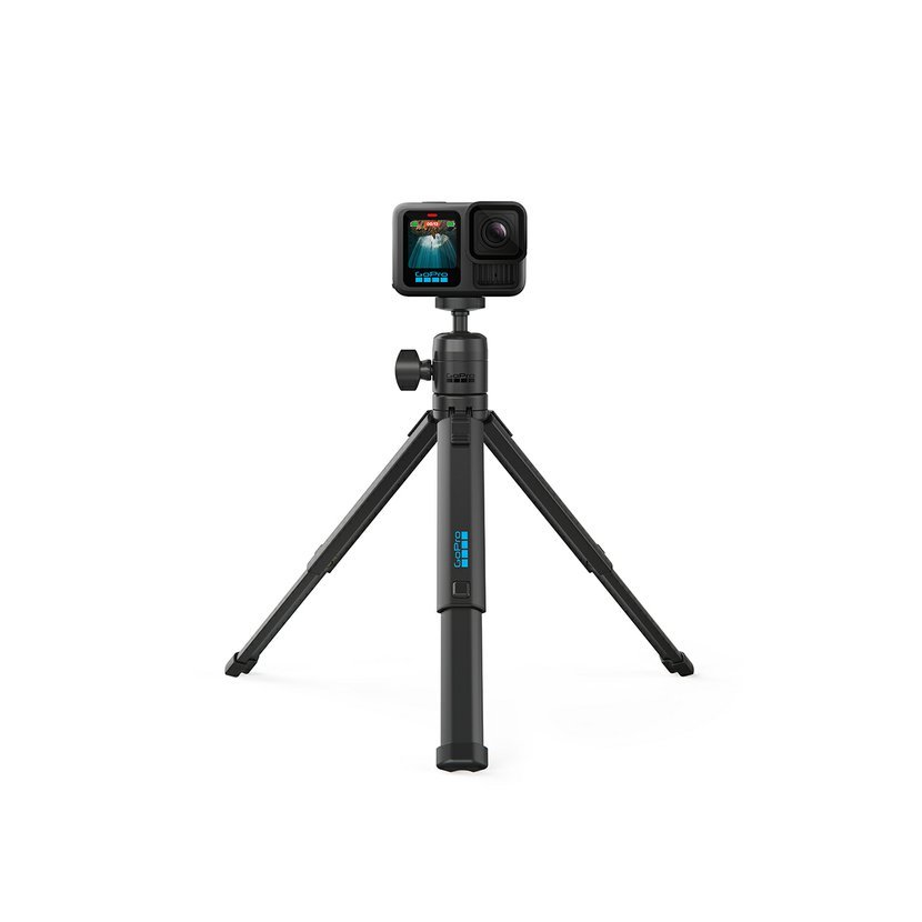 Tento neskutočne všestranný tripod je navrhnutý tak, aby poskytol tvojej kamere pevnú základňu na akom povrchu - od dokonale rovného až po rozoklané skaly. Jeho nohy je možné zamknúť v akéhokoľvek uhla, vysunúť alebo položiť naplocho - jednoducho nastaviť tak, aby si mohol urobiť perfektný záber - a to aj z piesku alebo vody. Je vybavený guľovou hlavou, ktorá sa otáča o celých 360 ° a nakláňa až o 90°, čo ti pomôže zaistiť najlepší uhol záberu. K tripodu je tiež možné pripojiť kompatibilnú predlžovaciu tyč so statitvovým závitom pre zaobstaranie 360° záberov bez viditeľnej tyče.
